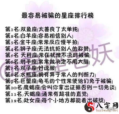 最feichangrongyi非常容易上当受骗的星座排名榜