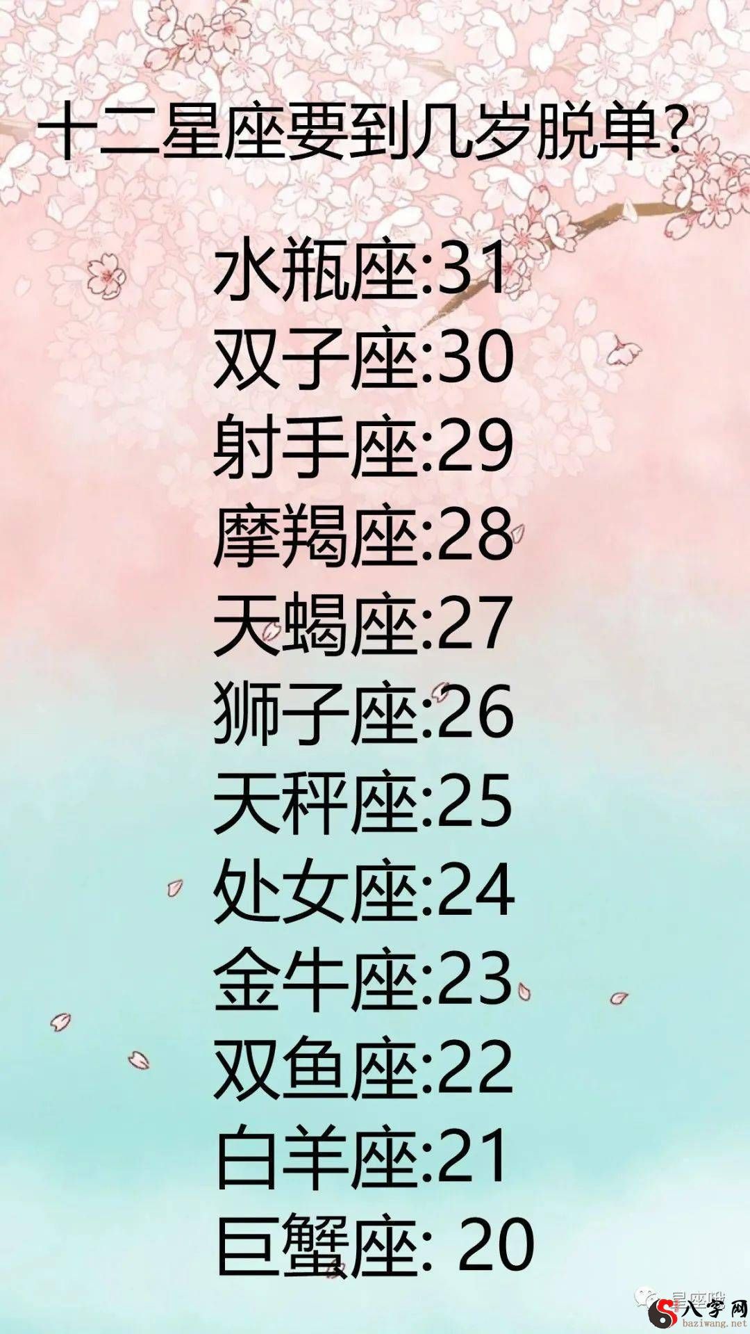 十二shier星座要到多少岁告别单身?