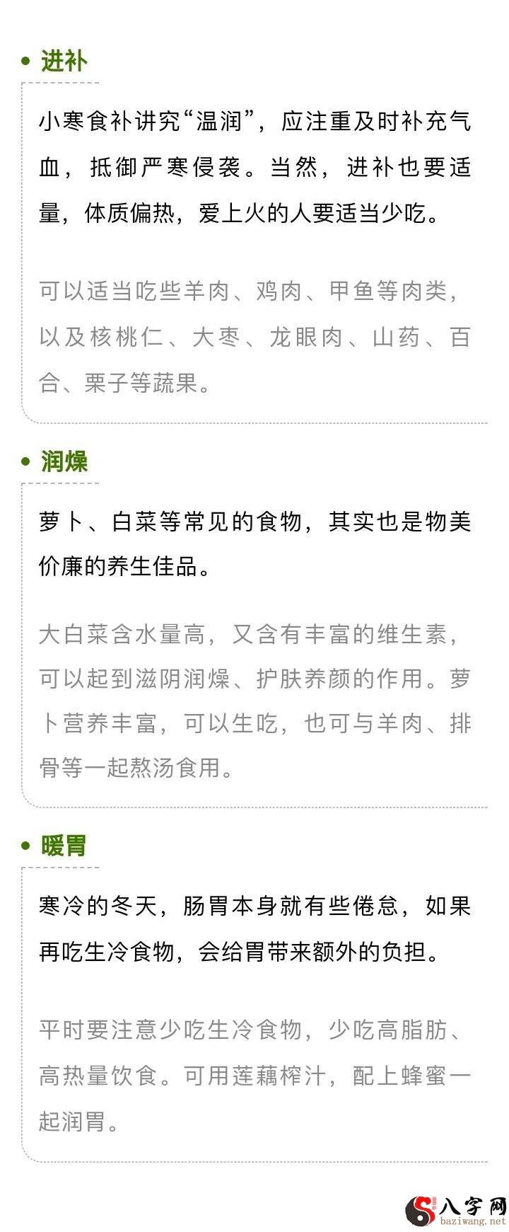 小寒节气前后左右(qianhouzuoyou),要多吃一些(yixie)清补的shicai食材以御凉气。俗话说得好,“三九buyidong补一冬,明年无病苦”,说的便是冬季(dongji)食羊肉调理人体的作法。