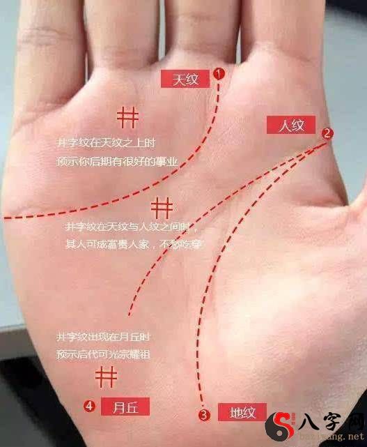 实际上便是(bianshi)井字纹(jingziwen)。和星字纹、十字纹一样,这类纹路也是掌纹中意味着着兆头的纹路,出現在不一样、xianwen线纹之中(zhizhong)所有(suoyou)着的运程(yuncheng)含意是存有一定的qubie区别。好像坐落于shouzhang手掌心中(xinzhong)的巽宫,也就是无名指正下方的木星丘得话,便可以提高此人所有(suoyou)着的财气(caiqi)非常充沛。