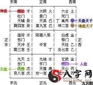 在其中《奇门统宗(tongzong)》有记述“奇门占法要分声响的用处yongchu静则只查值chazhi符、值使、shigan时干,看其(kanqi)wuxingshengke五行生克衰旺怎样(zenyang)。动不动专看方位,盖动者机之先见者也。如闻南方(nanfang)的事则占离位闻北方的事则占坎位(kanwei)” 原文中yuanwenzhong这句话所体现的断局duanju方位和思路是,静赏值符、值使、时干(shigan)五行生克(wuxingshengke)衰旺,动不动kanqi看其方向(fangxiang)上“天”“地”“人”“神”四盘(sipan)情况的断卦方式。