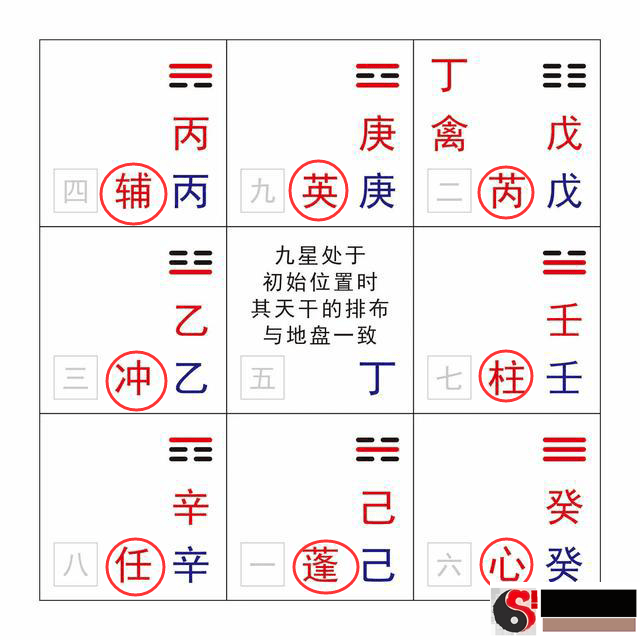 因此我们可以keyi根据(genju)之前(zhiqian)的规律性guilvxing汇总下,最先先明确时辰的旬首,在地盘寻找对应(duiying)的宫位(gongwei)来明确值符所处(suochu)宫位(gongwei),值符所处(suochu)gongwei宫位的星位再挪动到时辰十二天干宫位(gangongwei)。这就是天盘的基本上变化规律性(guilvxing)。