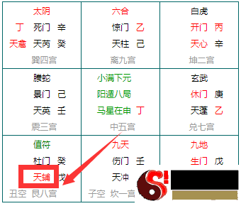 可以(keyi)见到地盘的(甲寅)癸在巽4宫,巽四宫sigong原始星为天辅星tianfuxing,值符就为天辅星tianfuxing,我们可以keyi在xiangxi详细的盘里见到天辅tianfu星落在了艮八宫上