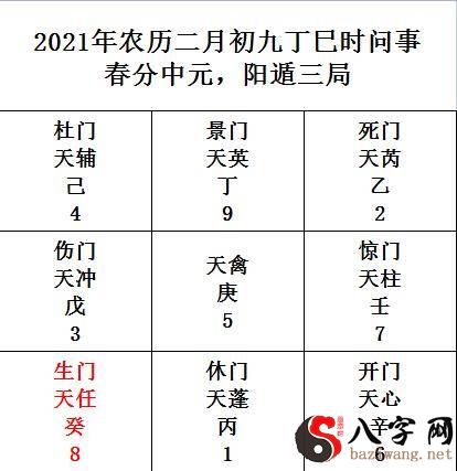 值使随时随地宫,丁巳时,寅落艮八宫,卯落九宫,chenluo辰落一宫,巳落二宫(luoergong)。故值使生门落二宫(luoergong)。