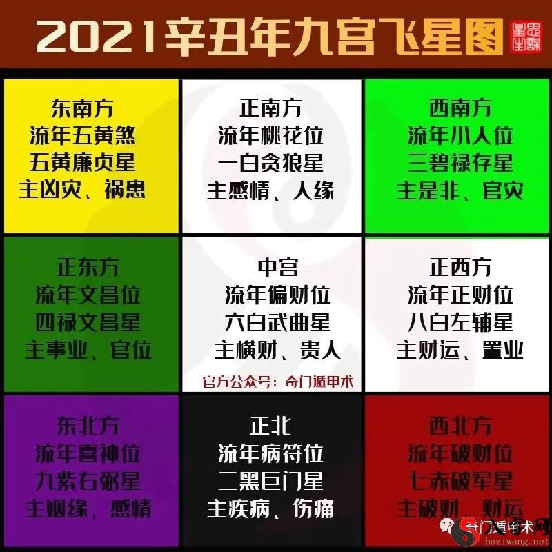 2021辛丑年xinchounian九宫飞星图,催聚财星、解决凶煞详细(xiangxi)说明